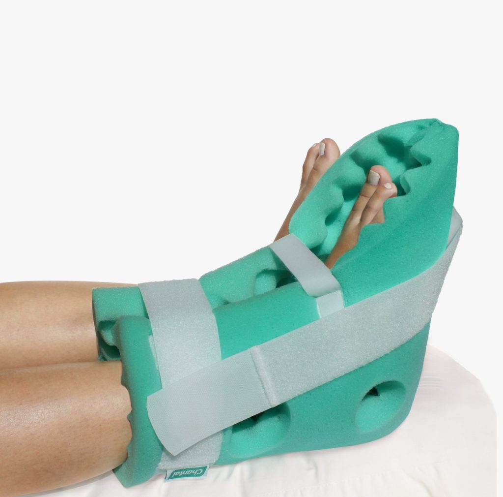 Em caso de pós-operatório mais longo, em que os pés precisam permanecer imobilizados, a forração ortopédica para calcanhar, além de cumprir a função de manter o pé posicionado a 90 graus, também é ideal para prevenir feridas, já que o formato triangular da espuma alivia a pressão sob o calcanhar.