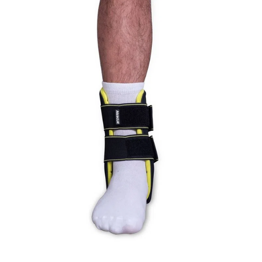 Dependendo do grau da lesão, também pode ser utilizado protetor articular, a fim de estabilizar o local, ou bota para imobilizar o tornozelo machucado.