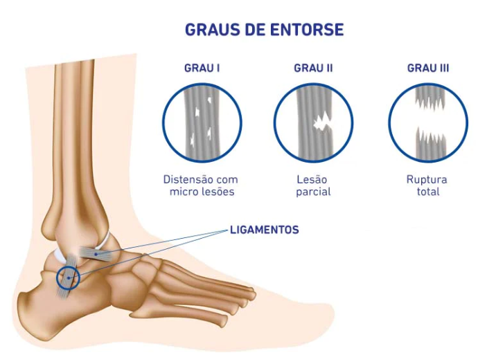 Existem diferentes graus de entorse, que, se não tratados adequadamente, podem trazer complicações.