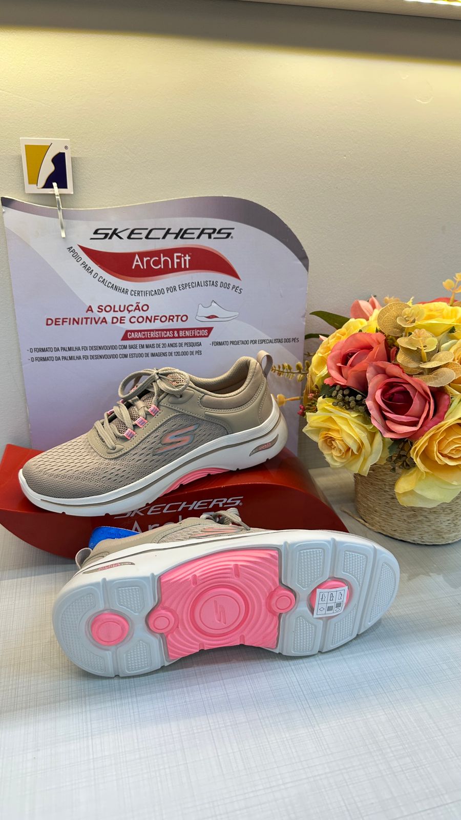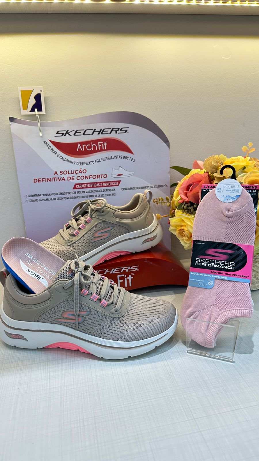 Arch Fit: A tecnologia Arch Fit da Skechers oferece suporte e estabilidade aos pés, com palmilhas adaptativas que moldam ao arco, amortecimento para absorver impactos e material respirável. O design inclui cabedal ventilado, entressola leve e solado durável, reduzindo dores e melhorando conforto e desempenho em atividades físicas.